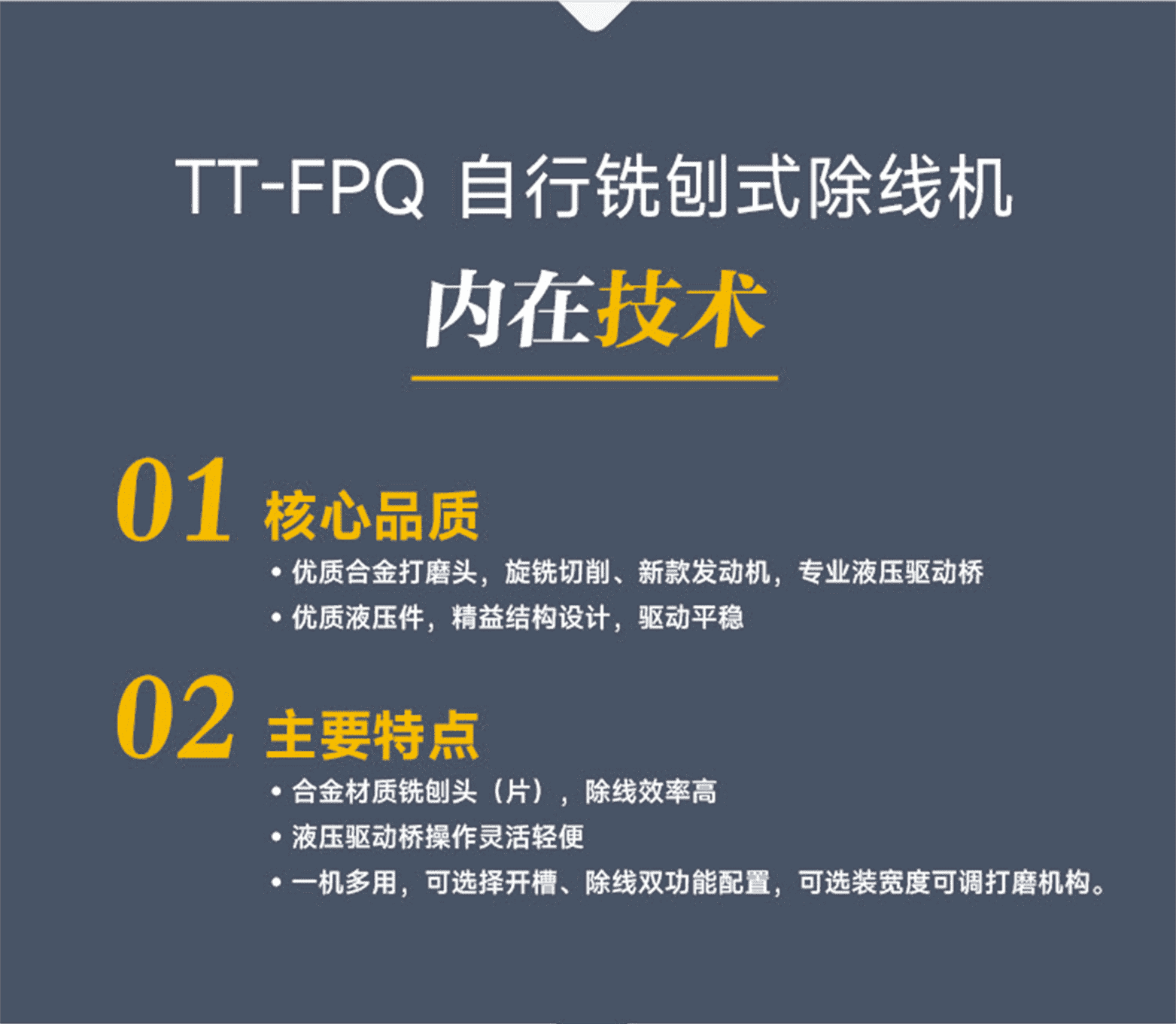 ?專家測評:核心品質(zhì):優(yōu)質(zhì)合金打磨頭,旋銑切削、新款發(fā)動機,專業(yè)液壓驅(qū)動橋、優(yōu)質(zhì)液壓件,精益結構設計,驅(qū)動平穩(wěn)。主要特點:合金材質(zhì)銑刨頭(片),除線效率高、液壓驅(qū)動橋操作靈活輕便、一機多用,可選擇開槽、除線雙功能配置,可選裝寬度可調(diào)打磨機構。